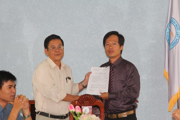 TS.Nguyễn Huỳnh Bạch Sơn Long (phải) nhận quyết định bổ nhiệm Trưởng Khoa ....