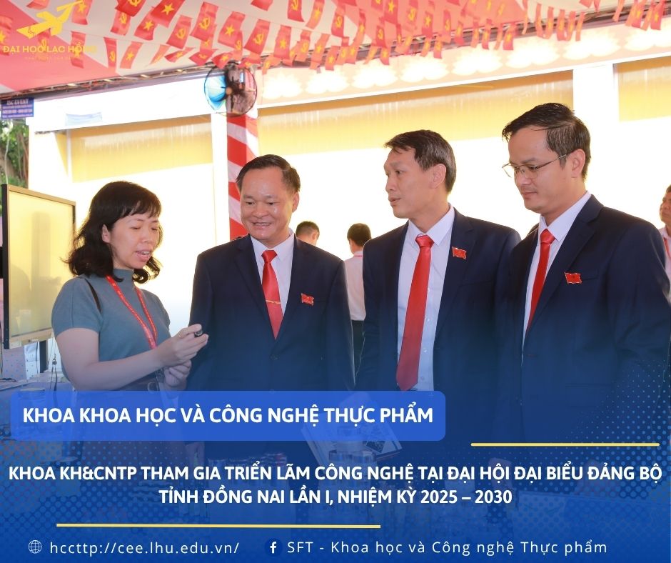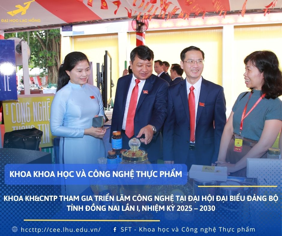 Hòa trong không khí phấn khởi chào mừng Đại hội đại biểu Đảng bộ tỉnh Đồng Nai lần I, nhiệm kỳ 2025 – 2030, Khoa Khoa học và Công nghệ Thực phẩm, Trường Đại học Lạc Hồng đã vinh dự góp mặt tại triển lãm công nghệ với nhiều sản phẩm nghiên cứu đặc trưng, gắn liền với thực tiễn đời sống và nhu cầu xã hội.