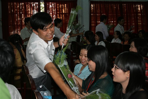 Ngoài ra, nhân dịp này Ban Giám hiệu trường tặng mỗi cán bộ nữ nhà trường 01 tấm vải áo dài trị giá 200.000đ/tấm và chi đoàn Cơ quan cũng có những bông hoa tươi thắm gửi tặng đến mọi người.