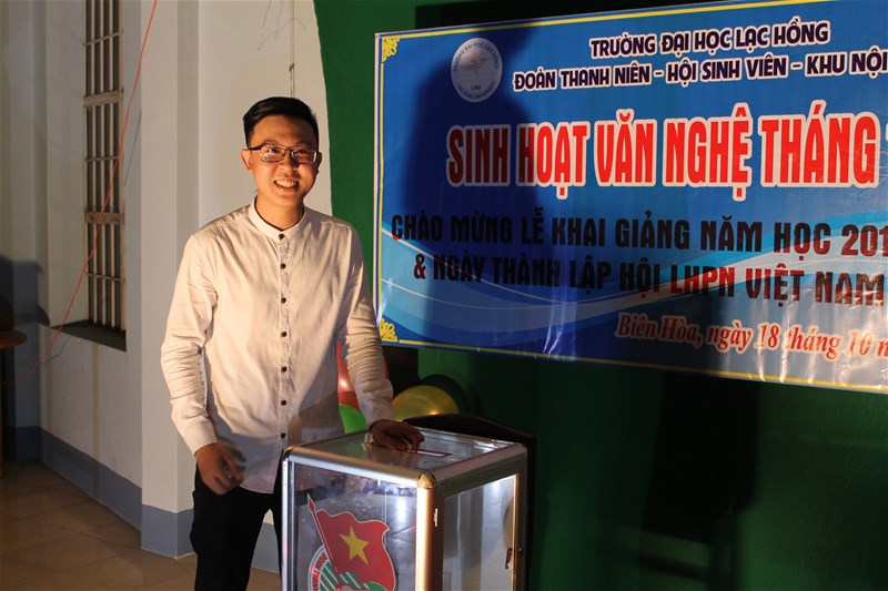 Chào mừng Lễ Khai giảng năm học 2016 – 2017 và Ngày Phụ nữ Việt Nam 20/10. Đoàn Thanh niên – Hội Sinh viên trường Đại học Lạc Hồng kết hợp với Khu Nội trú tổ chức đêm sinh hoạt văn nghệ chào mừng. Đến dự buổi sinh hoạt có NGƯT. Lê Thị Hiếu – Trưởng ban Quản Lý Khu Nội trú, Đ/c Lê Sơn Quang – Bí thư Đoàn trường, Đ/c Trần Tiến – Chủ tịch Hội Sinh viên trường.