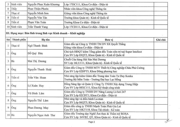 Danh sách 50 Gương mặt LHU tiêu biểu năm 2020