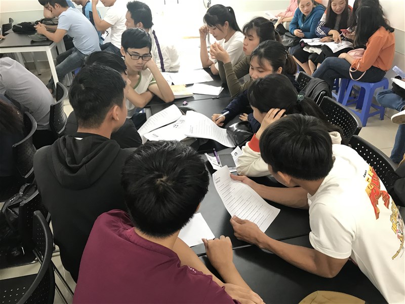 Các bạn sinh viên hăng hái tham gia thảo luận nhóm.