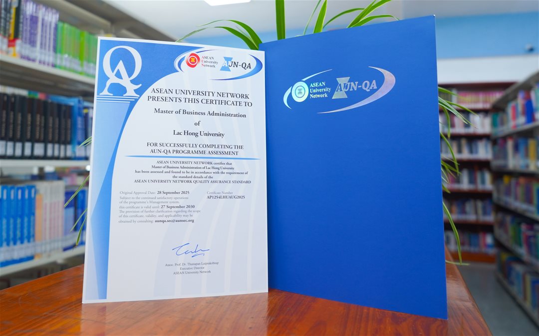 Khoa Sau đại học, trường Đại học Lạc Hồng (LHU) chính thức nhận được chứng nhận từ Mạng lưới các trường đại học Đông Nam Á (ASEAN University Network – AUN), đạt chuẩn AUN - QA cho 04 chương trình đào tạo thạc sĩ gồm: Tài chính - Ngân hàng, Quản trị kinh doanh, Công nghệ thông tin và Kỹ thuật công trình.