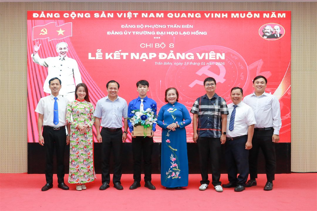 Sáng ngày 13/01/2026 tại Hội trường A301, Trường Đại học Lạc Hồng, Chi bộ 8 đã long trọng tổ chức Lễ kết nạp đoàn viên, sinh viên ưu tú Võ Hồng Miên vào Đảng Cộng sản Việt Nam.
