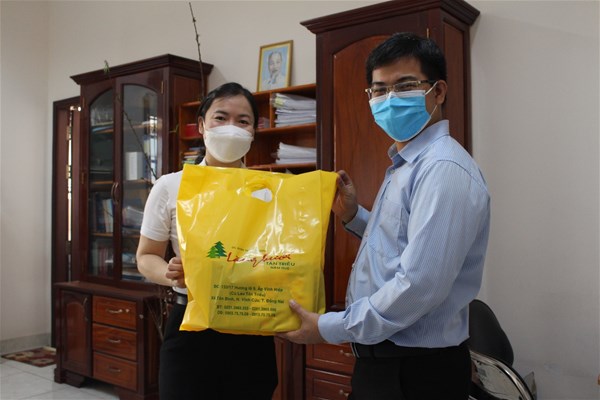Thầy ThS. Võ Anh Phúc đại diện khoa QT-KTQT tặng quà tết cho Ông Trần Phương Đông - Thẩm phán TAND tỉnh Đồng Nai