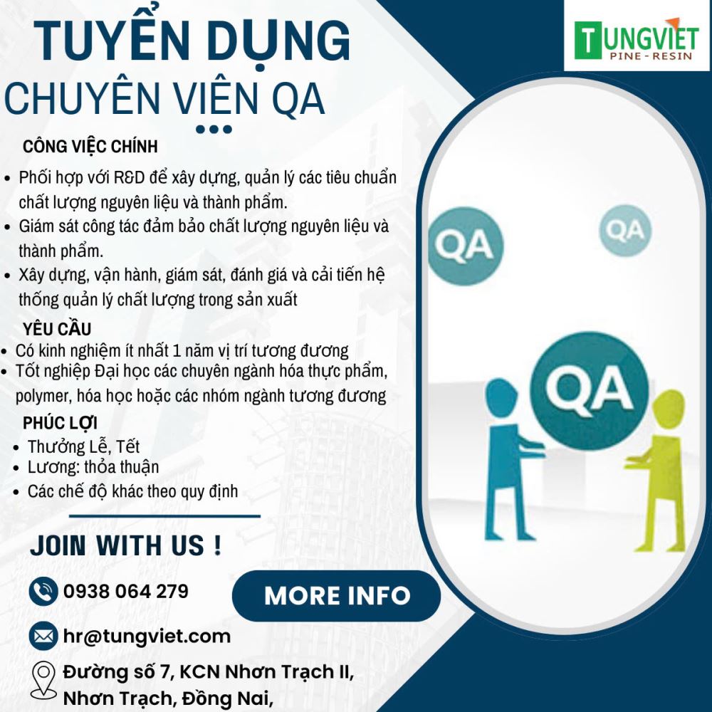 Công Ty Cổ Phần Hóa Phẩm Tùng Việt tuyển dụng nhân viên QA ngành Công nghệ thực phẩm