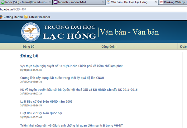 Hình 1: Hệ thống văn bản được đưa lên Website của Trường Đại học Lạc Hồng