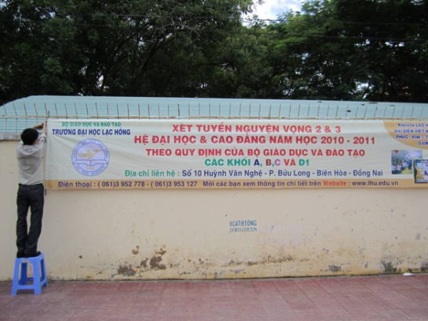 Treo băng rôn Thông tin tuyển sinh tại THPT Lê Lợi tỉnh Sóc Trăng.