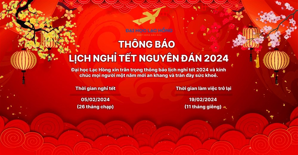Khoa Công nghệ thông tin - Trường Đại học Lạc Hồng xin trân trọng thông báo lịch nghỉ tết Nguyên Đán 2024 như sau: