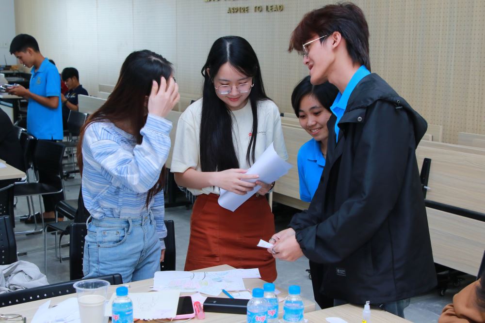 • Thực hành nhóm: Các bạn sinh viên được chia thành các nhóm nhỏ để thực hành theo kịch bản mô phỏng dự án thực tế, dưới sự hướng dẫn và hỗ trợ của các Scrum Coach từ Techbase VN.