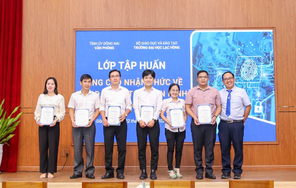 Ngày 22/11/2024, Khoa Công nghệ Thông tin, Đại học Lạc Hồng phối hợp cùng với Văn phòng tỉnh uỷ Đồng Nai đã tổ chức: "Tập huấn nâng cao nhận thức về bảo đảm an toàn, an ninh thông tin cho đối tượng là cán bộ lãnh đạo, công chức trong các cơ quan" dành cho hơn 150 cán bộ tỉnh ủy tại Hội trường Tỉnh Uỷ Đồng Nai. Chương trình nhằm đáp ứng nhu cầu cấp thiết trong việc nâng cao nhận thức và kỹ năng thực hành an toàn thông tin trong bối cảnh chuyển đổi số và các mối đe dọa an ninh mạng đang gia tăng.