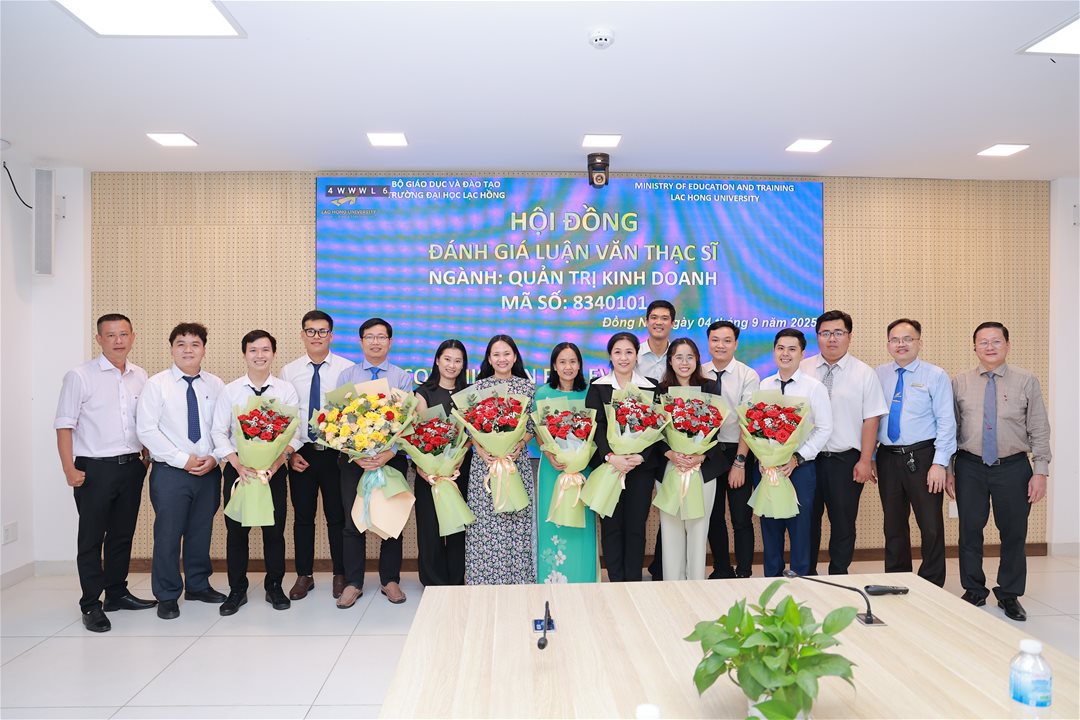 Ngày 04 tháng 09 năm 2025, tại phòng họp cơ sở 1 của Trường Đại học Lạc Hồng (LHU), 13 học viên ngành Quản trị kinh doanh đã xuất sắc hoàn thành và bảo vệ luận văn thạc sĩ của mình. Buổi bảo vệ diễn ra trong không khí trang trọng và đầy tính học thuật, đánh dấu một bước ngoặt quan trọng trong hành trình học tập và nghiên cứu của các học viên.