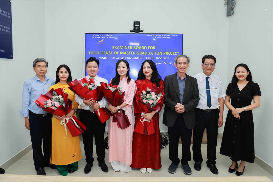 Ngày 18 tháng 10 năm 2025, tại Phòng Tiến sĩ (B107) của Trường Đại học Lạc Hồng, 04 học viên ngành Ngôn ngữ Anh đã bảo vệ và hoàn thành xuất sắc đồ án tốt nghiệp thạc sĩ của mình. Buổi bảo vệ diễn ra dưới sự đánh giá của Hội đồng chuyên môn, bao gồm các chuyên gia trong lĩnh vực Ngôn ngữ Anh, những người đã đưa ra các nhận định sâu sắc và mang tính học thuật cao.