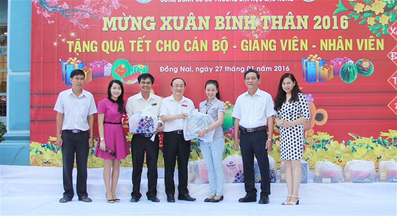 Nhằm nhân rộng chuỗi hoạt động chăm lo đời sống của công đoàn viên, ngày 27/01/2016 (18/12/2015 ÂL) đại diện Ban Giám Hiệu, Ban Chấp hành Công đoàn Trường (BCH) đã tổ chức tặng 518 phần quà Tết Bính Thân - 2016 cho công đoàn viên của nhà trường.