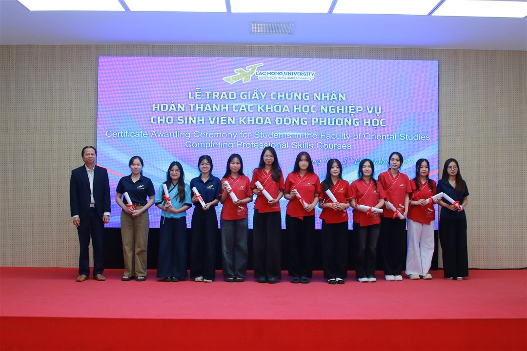 Hơn 93 sinh viên đã hoàn thành xuất sắc và nhận giấy chứng nhận nghiệp vụ trong Lễ trao Giấy chứng nhận hoàn thành các khóa học nghiệp vụ cho sinh viên Khoa Đông phương học vào ngày 03/12/2025 – sở hữu những kỹ năng “vàng” giúp sinh viên tự tin ghi dấu ấn ngay từ khi học tập và cho đến khi ra trường làm việc tại doanh nghiệp.