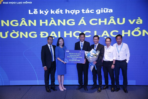 Đại học Lạc Hồng (LHU) vừa tiến hành lễ ký kết hợp tác toàn diện với Ngân hàng Á Châu (ACB), hợp tác về mảng đào tạo, tuyển dụng. Đánh dấu sự kiện, phía ACB đã trao tặng Đại học Lạc Hồng phòng thực hành ngân hàng trị giá 260 triệu đồng.