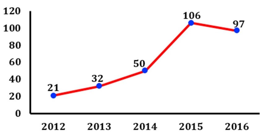 The training duration of the program is 4.5 years. Students graduated from the program are awarded the degree of “Bachelor of Electrical and Electronics Engineering Technology”. Bellow Figure brief presents the number of students graduated from the program in the period between 2012 and 2016.