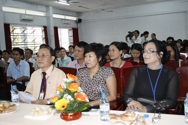 Trong buỗi họp mặt cô Hồ Thị Hải Yến – trưởng ban nữ công của trường đã ôn lại lịch sử của ngày quốc tế phụ nữ và những truyền thống tốt đẹp của phụ nữ Việt Nam cũng như phụ nữ thế giới. Cô cũng tổng kết phong trào phụ nữ ở trường trong thời gian qua và phát động phong trào Công Đoàn nói chung, phong trào của chị em phụ nữ nói riêng nhằm hoàn thành tốt những mục tiêu đã đề ra từ đầu năm học. Tiếp đó thầy Diệp Cẩm Thu – Chủ tịch Công Đoàn Nhà trường phát biểu chúc mừng chị em phụ nữ nhân ngày 08 – 03. Tham dự chương trình, Ths Nguyễn Hồ Xuân Hương đại diện cho Đảng ủy nhà trường cũng phát biểu chúc mừng chị em trong trường. Náo nhiệt và vui nhất trong buổi họp mặt là phần các thầy tặng hoa cho chị em phụ nữ. Cả hội trường ngập tràn hoa và những tiếng cười hạnh phúc.