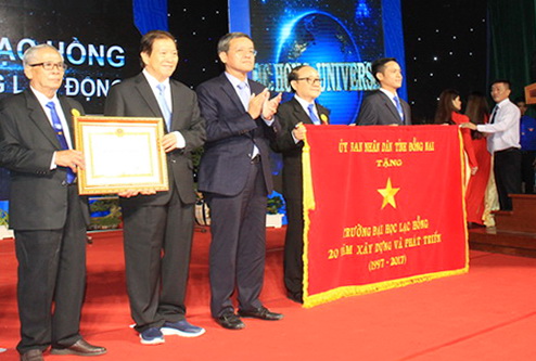 Thừa ủy quyền của Chủ tịch nước, Chủ tịch UBND tỉnh Đinh Quốc Thái đã gắn Huân chương Lao động hạng Nhất cho Trường đại học Lạc Hồng, đồng thời tặng bức trướng của UBND tỉnh cho trường. Dịp này, 11 tập thể và 46 cá nhân có nhiều đóng góp xây dựng và phát triển nhà trường được UBND tỉnh tặng bằng khen.