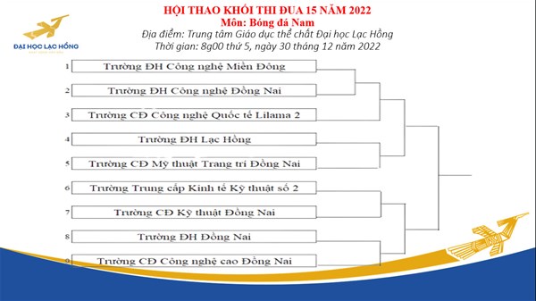 Sáng ngày 26/12/2022, Ban Tổ chức của Hội thao Khối thi đua 15 năm 2022 đã tổ chức buổi họp chuyên môn, bốc thăm thi đấu cho Hội thao gồm 13 trường đại học, cao đẳng và trung cấp của tỉnh Đồng Nai.