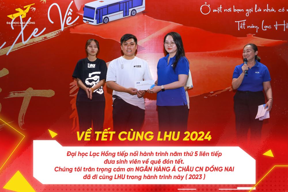 “Về Tết cùng LHU 2024” đánh dấu năm thứ 5 Đại học Lạc Hồng triển khai chương trình Chuyến xe về Tết cho sinh viên đang học tại Trường. Trong suốt hành trình ấy Đại học Lạc Hồng rất tự hào khi mang đến niềm hạnh phúc cho hàng ngàn sinh viên ở xa được an toàn về quê đón Tết cùng gia đình và nhận về sự đồng hành, ủng hộ của doanh nghiệp và mạnh thường quân.