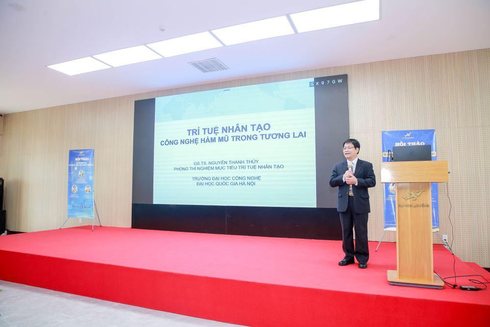 Tại hội thảo, GS.TS. Nguyễn Thanh Thủy - Ủy viên Hội đồng Giáo sư Nhà nước; Chủ tịch Hội đồng Giáo sư Nhà nước ngành Công nghệ thông tin  (Bộ Giáo dục và Đào tạo) - Trưởng nhóm Chuyên gia xây dựng chiến lược quốc gia về Trí tuệ nhân tạo (Bộ Khoa học và Công nghệ), chuyên gia hàng đầu trong lĩnh vực trí tuệ nhân tạo, đã chia sẻ về xu hướng phát triển của AI trên thế giới và Việt Nam. Ông nhấn mạnh rằng, để AI thực sự trở thành công cụ hỗ trợ con người, cần có những chính sách phù hợp cũng như sự chuẩn bị kỹ lưỡng về nhân lực và hạ tầng công nghệ.