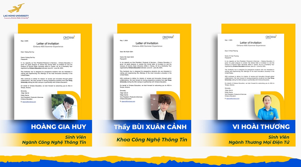 Chân dung 3 đại diện LHU sẽ đến Hoa Kỳ cùng thư mời của ASU vào mùa hè 2025