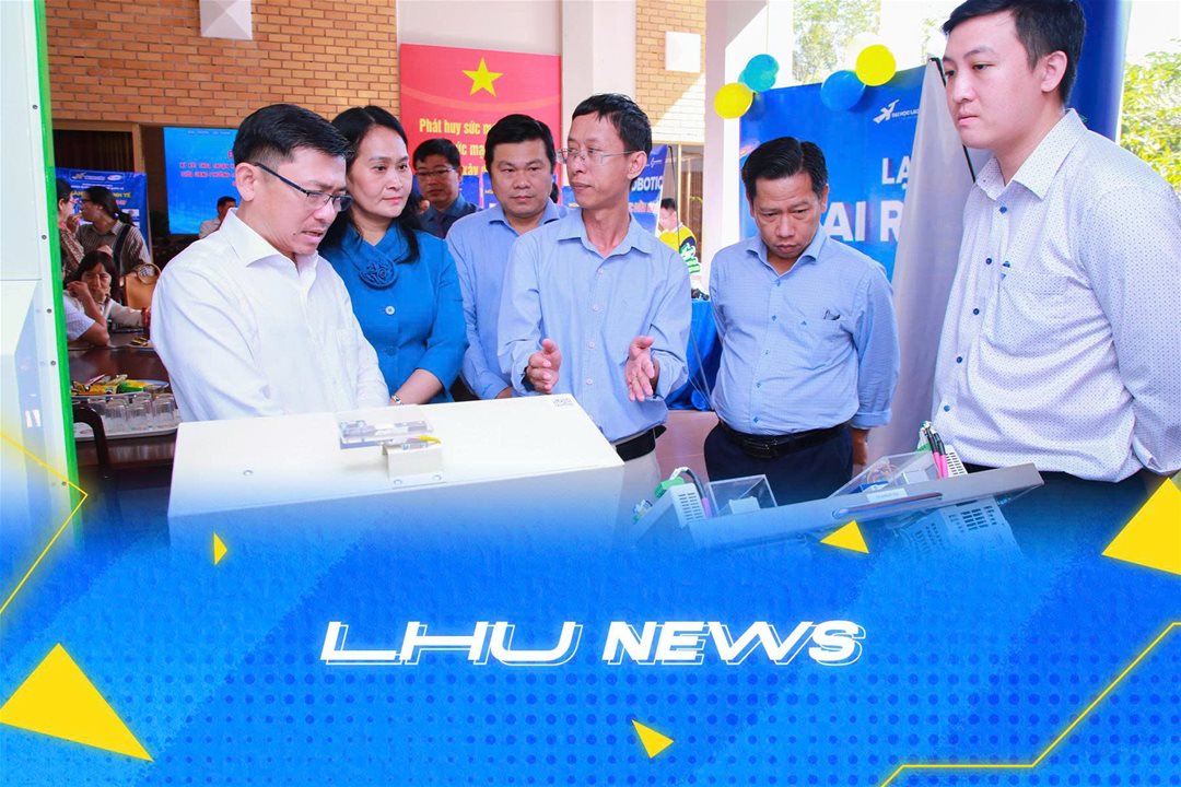 Lãnh đạo địa phương tìm hiểu khu vực triển lãm công nghệ của LHU tại sự kiện