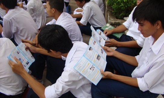 Đoàn công tác đã chia thành nhiều nhóm nhỏ để đến các trường cấp 3 trong tỉnh Bà Rịa – Vũng Tàu, nói chuyện với các em về công tác tuyển sinh trong giờ chào cờ.