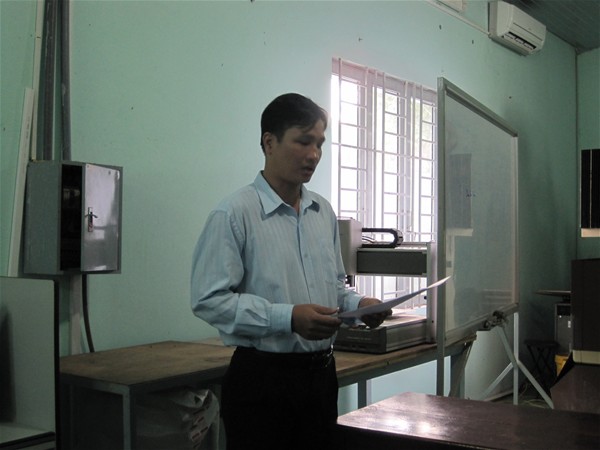 Thầy Nguyễn Hà Thoại Phi báo cáo đề tài "Thiết kế và thi công các bộ thí nghiệm phục vụ giảng dạy môn học thực tập điện tử cơ bản cho Sinh viên khoa Cơ Điện"