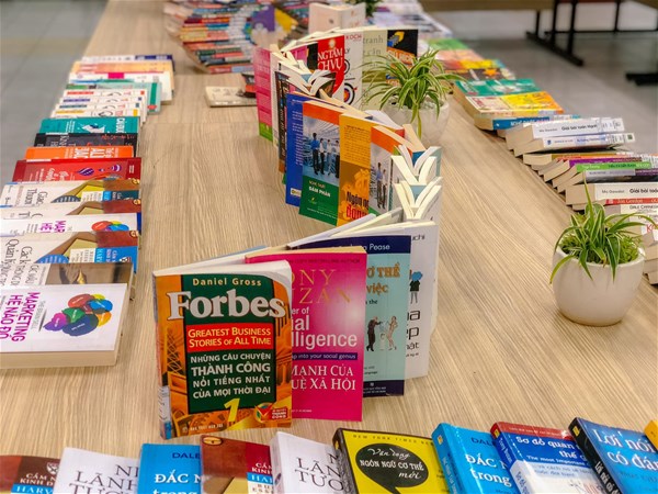 Sách được các cán bộ Thư viện bày trí sáng tạo và sắp xếp đẹp mắt, thu hút nhiều giảng viên, nhân viên và sinh viên đến chụp hình lưu niệm