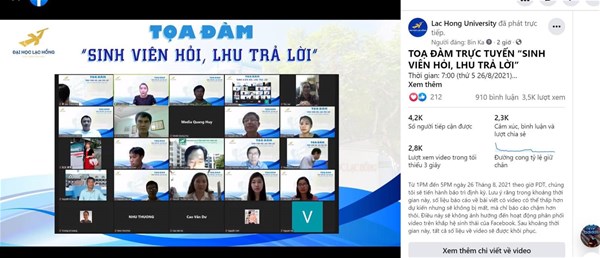 The Covid-19 epidemic is still happening very complicatedly, the school has made adjustments to the school year schedule, as well as appropriate teaching methods. However, it is still inevitable to worry from parents and students. To answer these problems, Lac Hong University held a seminar "Students ask LHU to answer" at 19:00 on August 26, 2021. Attending the seminar were the Rector Board, Faculty Board of Directors. , Board of Directors of departments.