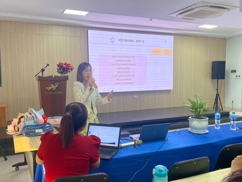 During the session, Ms. Le Thi Thuy Hang brought invaluable insights into persuading customers and effectively closing sales in the field of supply chain, particularly in cold storage management. By sharing practical experiences and successful strategies, Ms. Hang helped students gain a clearer understanding of how to apply these principles in their practical work.