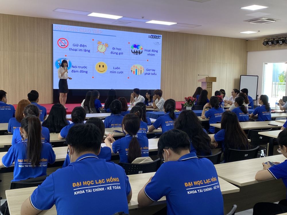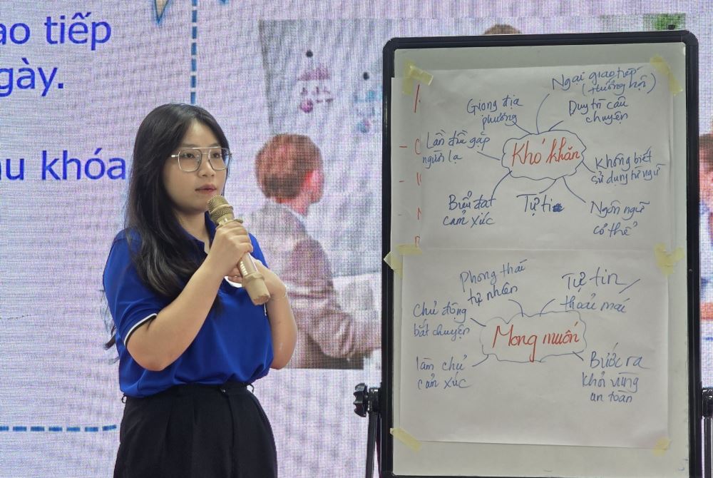 During this activity, Ms. Au Thi Thanh Thao shared profound experiences and knowledge about communication skills in the workplace. By presenting through specific and practical examples, she helped students gain a clearer understanding of the importance of communication skills and how to apply them in daily work.