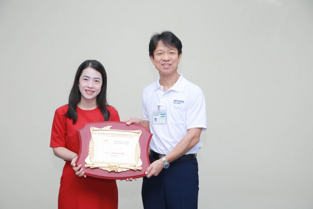 On behalf of the Faculty, a commemorative gift was presented along with heartfelt appreciation extended to the management team of MITSUBA Vietnam Co., Ltd. for their warm welcome, dedicated support, and for facilitating such a valuable opportunity for students to experience a professional working environment firsthand.