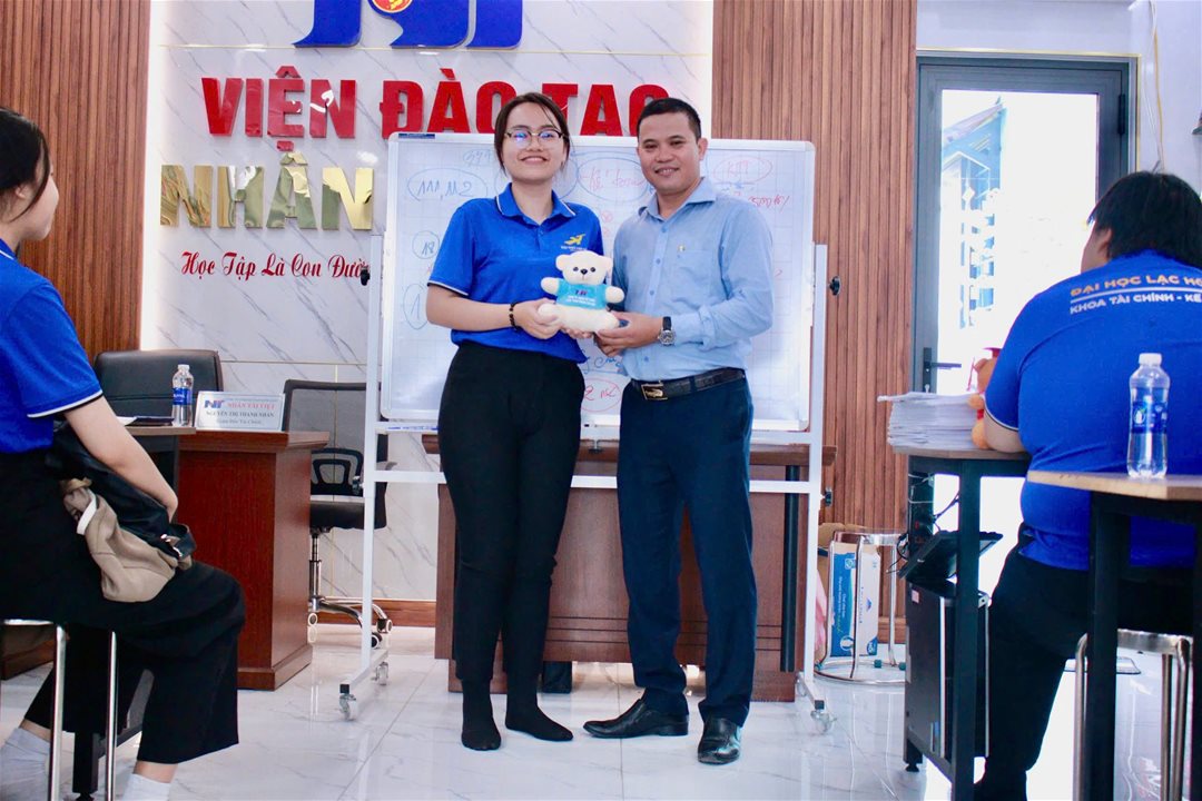 At the end of the visit, representatives of the Faculty of Finance and Accounting presented a souvenir gift and extended sincere thanks to the Board of Directors of Nhan Tai Viet Co., Ltd. for their cooperation and strong support in facilitating the Faculty’s training activities.