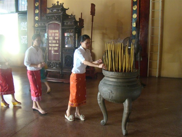 Teachers burn incense at Tran Bien Temple of Literature.