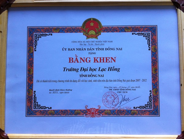 At the event, Lac Hong University was honorably awarded certificate of merit by provincial People’s Committee for its achievements in preferential credit program for students in the locality, stage 2007 - 2012.