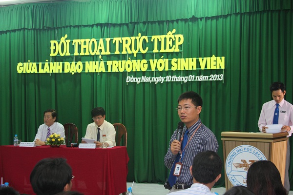 On the morning of January 10, a direct meeting between students and the University Management Board was held at Room A 301 – campus 1 – Lac Hong University. The program was attended by Chairman of the Trustees Board, Rector People’s Teacher Dr. Do Huu Tai, Vice Rectors Dr. Nguyen Van Nam and Lam Thanh Hien, M.A, representatives of offices and faculties and nearly 500 students at all levels.