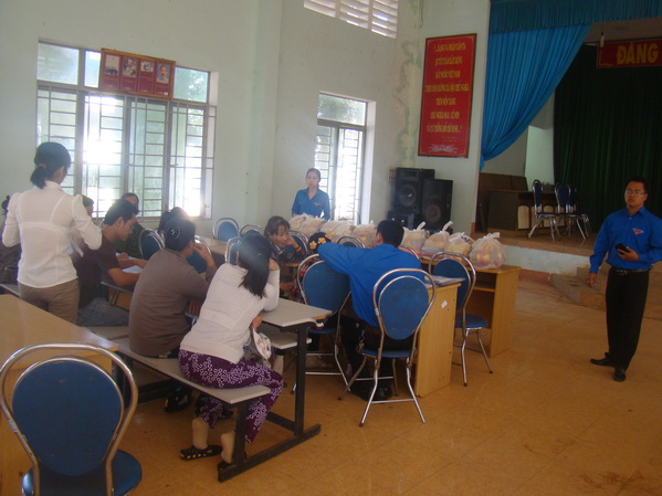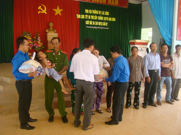 Presenting gifts and Tet gifts to families having dioxin victims.