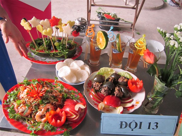 This year's contest caught the participation of 24 teams. Each included 3 members. Teams had 60 minutes including 15 minutes to prepare ingredients and the rest minutes to cook and decorate their dishes. The competition was filled with excitement and attraction.