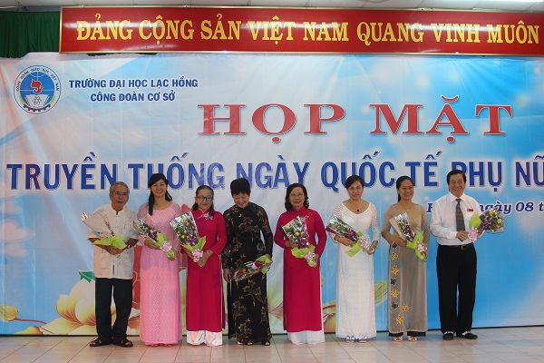In the morning of March 8, on the occasion of the 104th anniversary of International Women's Day (March 8, 1910 - March 8, 2014), Lac Hong University’s Trade Union specially organized an informal meeting at Meeting hall A 301 to honor and congratulate women staff. The meeting was participated by Secretary of Party Committee Nguyen Trung Phuong; Rector People's Teacher Dr . Do Huu Tai; Chairman of Trade Union Dr. Diep Cam Thu - Vice Rector; Chairman of Dong Nai Union of Science and Technology Associations Meritorious Teacher Dr. Nguyen Thi Thu Lan - Vice Rector and a great number of faculty members and staff.