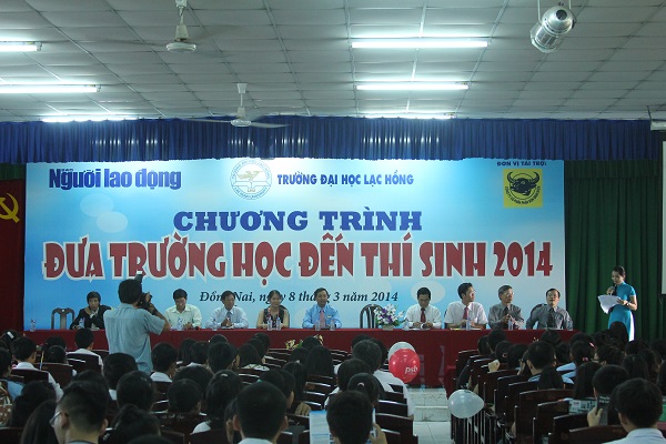 Speaking at the event, Ms. Tran Thu Thuy Vinh representing Laborer Newspaper said "Student Enrollment Day 2014 is held annually and takes place many provinces. In 2014, the program will go through 9 provinces including Dong Nai. The event today receives the great support from Lac Hong University, Binh Dien Fertilizer Joint Stock Company and the Consultancy Board. With experienced and strong advisers, high school students will be brave to express their worries about the coming entrance exam".