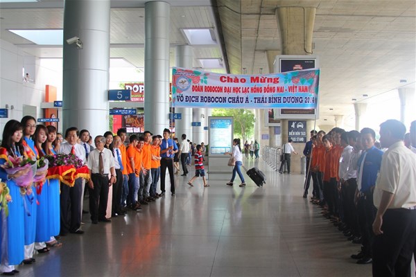 Tan Son Nhat airport was full of flowers, flags and praises for the champion of International Robocon 2014.