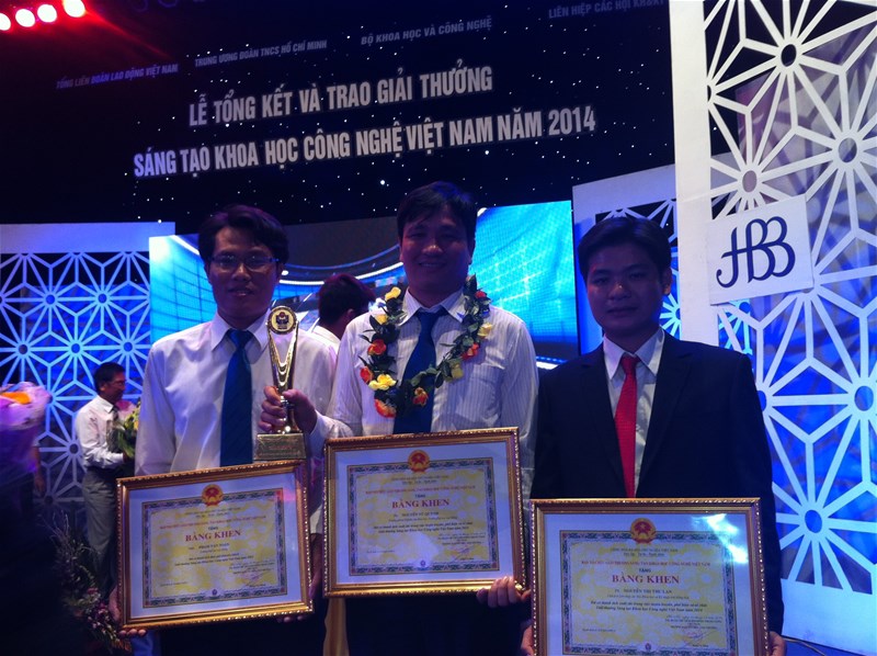 Pham Van Toan MSc (left), DSc Nguyen Vu Quynh (middle) and Eng. Ngo Van Binh representing author groups received prizes at the ceremony.