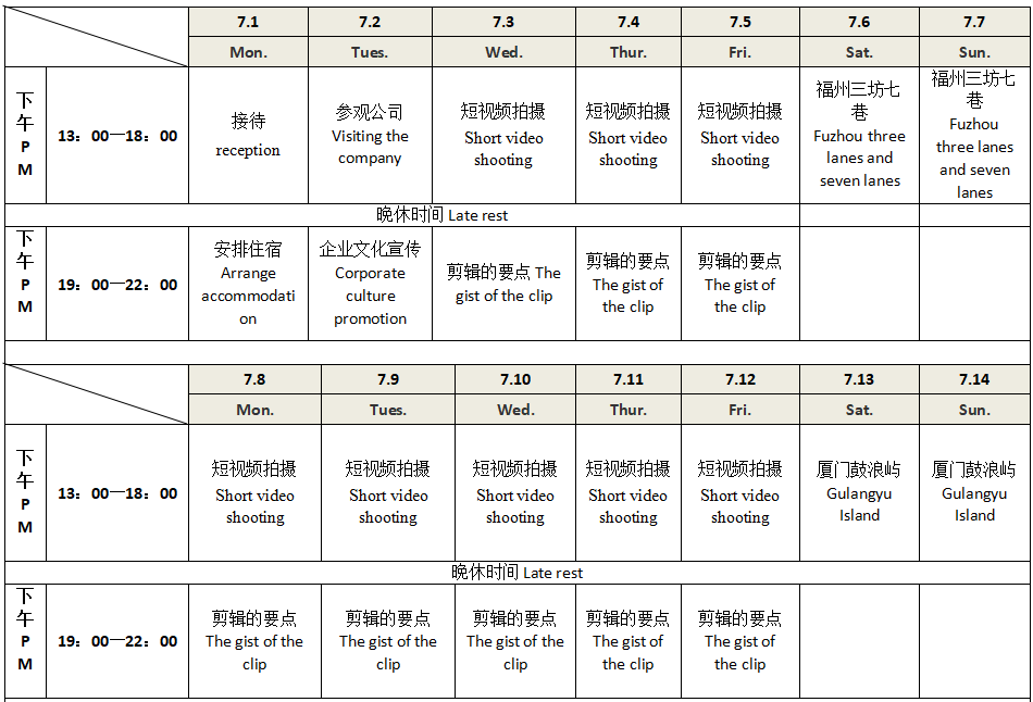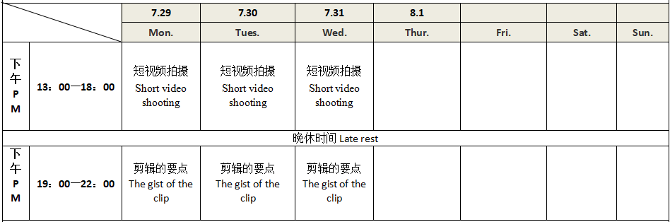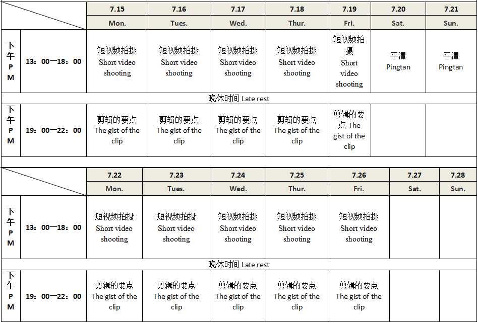 Tìm hiểu cách quay và chỉnh sửa các hướng dẫn sản xuất video ngắn, hiểu ý tưởng cốt lõi của video ngắn; nâng cao khả năng ứng dụng thực tế và mức độ quay video ngắn, đồng thời cung cấp cho sinh viên cơ hội để hiểu biết ban đầu hoặc hiểu sâu hơn về lịch sử Trung Quốc, giáo dục Trung Quốc, Phong tục Phúc Kiến và trải nghiệm đời sống xã hội đương đại của Trung Quốc.