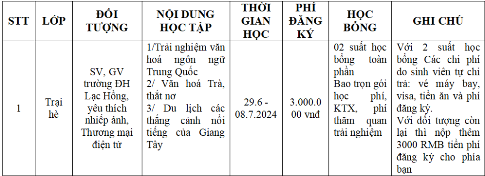 THỜI KHOÁ BIỂU LỚP TRẠI HÈ:
