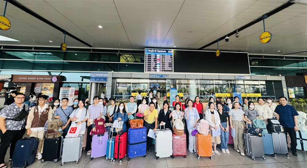 Giảng viên và sinh viên LHU trước giờ khởi hành bay sang Quế lâm - Trung Quốc
