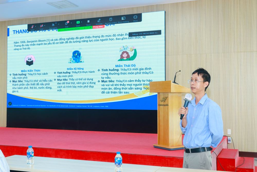 Dr. Le Phuong Truong, Head of the Office of Educational Testing and Quality Assurance at Lac Hong University, provided insights into developing lesson plans based on Bloom's taxonomy, OBE and designing blended learning courses.