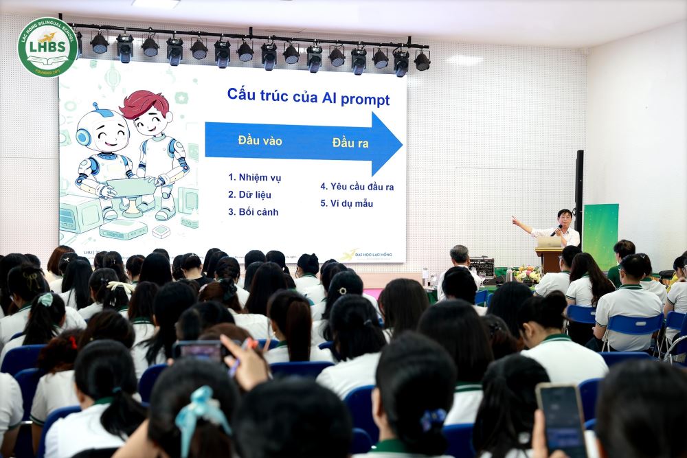 [Dong Nai, May 24, 2025] – Lac Hong Bilingual School (LHBS) officially launched its Integrating AI into Teaching and Learning project. This event marks a significant milestone, affirming the school's pioneering vision in local educational innovation, aiming to enhance the quality of education and learning effectiveness. The launch took place at Lac Hong Bilingual School, gathering esteemed speakers from Lac Hong University, including Dr. Lam Thanh Hien – Rector; Dr. Le Phuong Truong – Head of the Office of Educational Testing and Quality Assurance; and Dr. Huynh Cao Tuan – Director of the Center of Information and Resources. Representing Lac Hong Bilingual School were Mr. Phan Quang Vinh – Principal, along with all esteemed teachers from various levels.